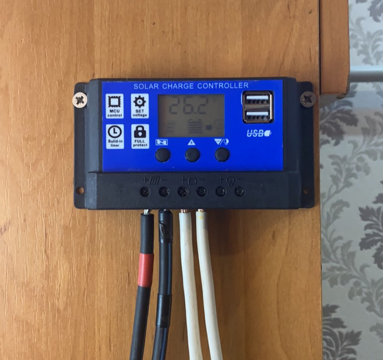Сонячна станція потужністю 1,2 кВт забезпечує резервне живлення дров'яного казана, заряд телефонів, освітлення.