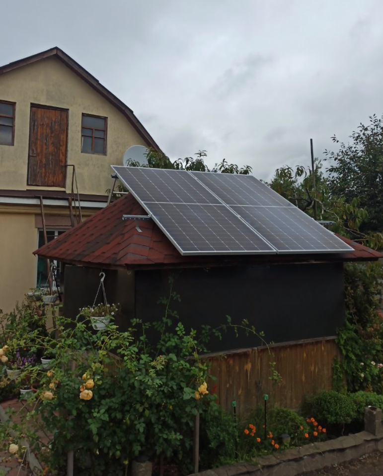 Резервну станцію змонтовано та введено в експлуатацію в Київській області. Сонячні панелі розмістили на даху альтанки.
