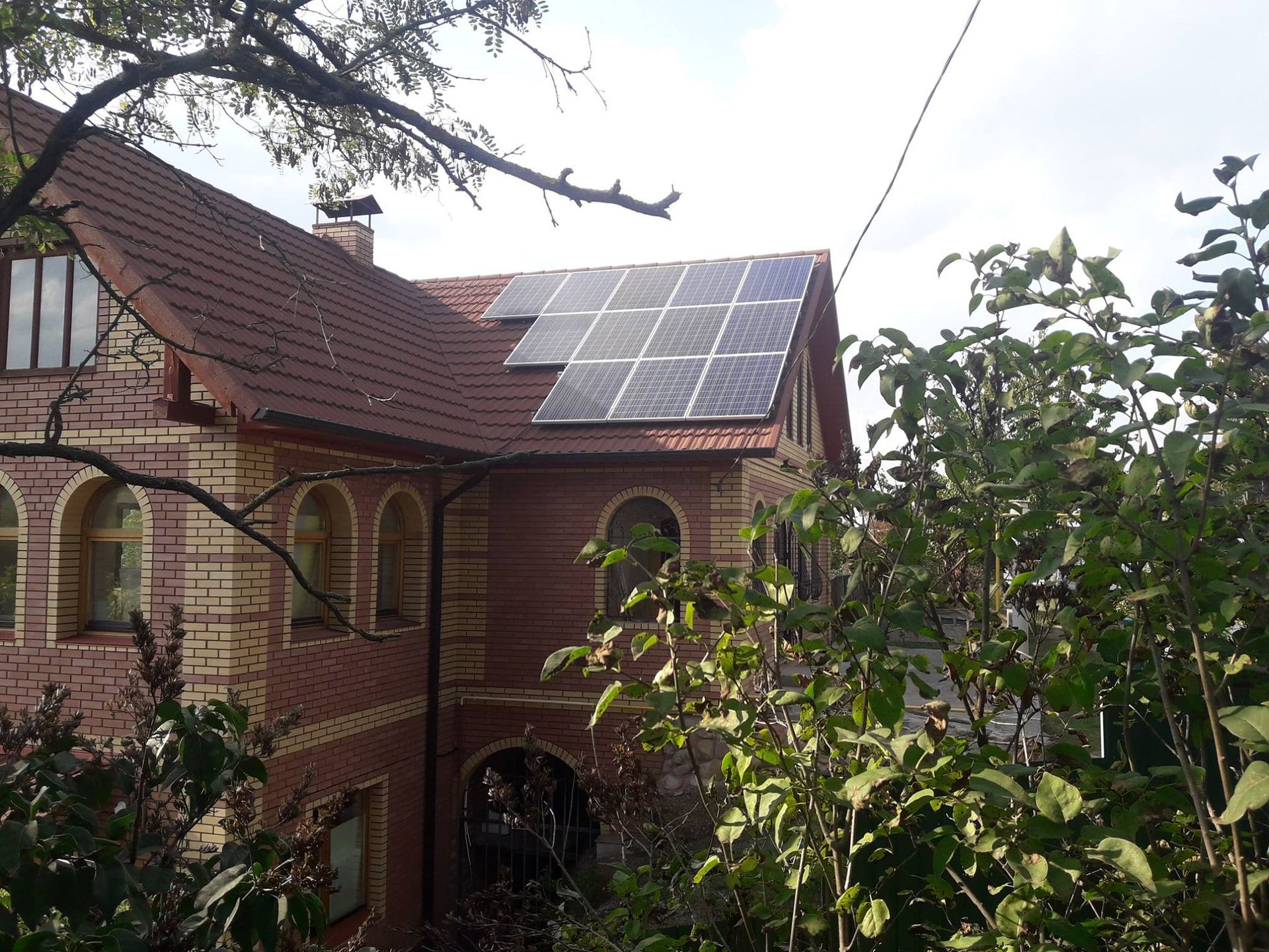 • Розміщення панелей: Через те, що площини даху розташовані в різні боки, було прийнято рішення встановити 11,5 кВт сонячних батарей.