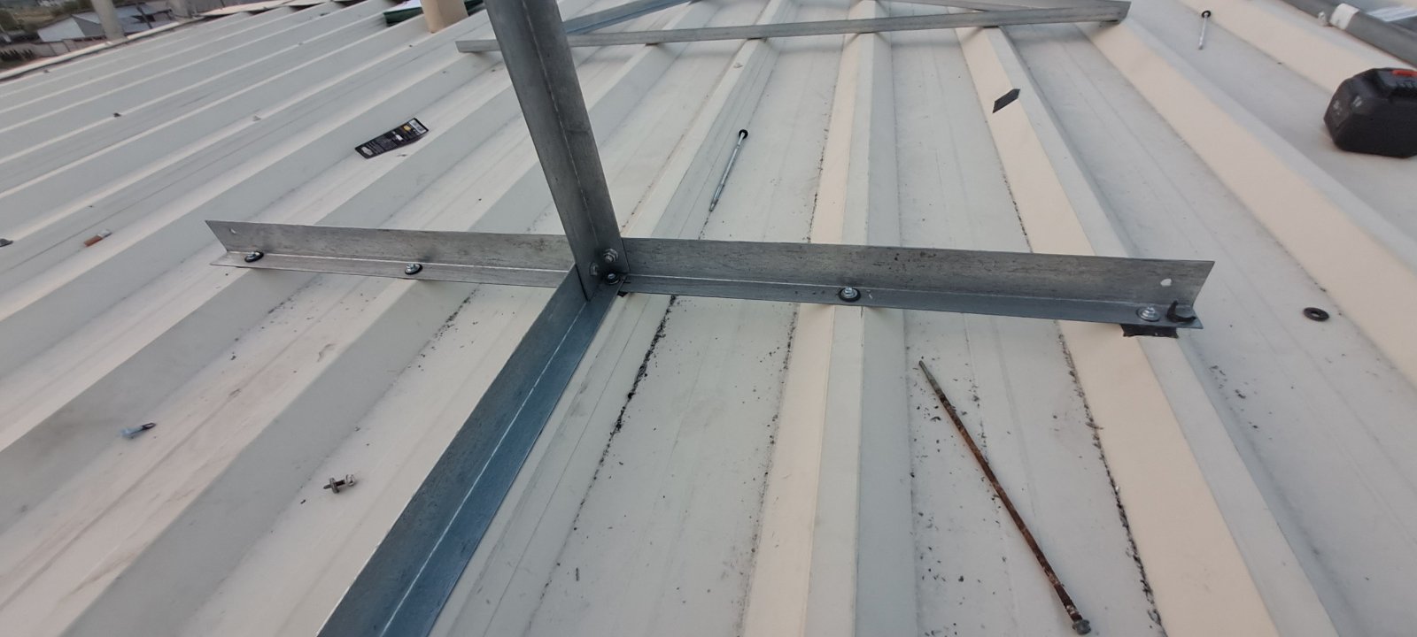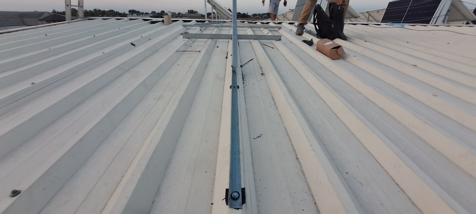 Для кріплення панелей було обрано опору у вигляді трикутників, виготовлених з уголків розміром 50х30х3. Таке рішення забезпечило необхідну стійкість та надійність конструкції. Для кріплення до даху використовували спеціальні шурупи для сендвіч-панелей, що забезпечило надійне та безпечне з'єднання.