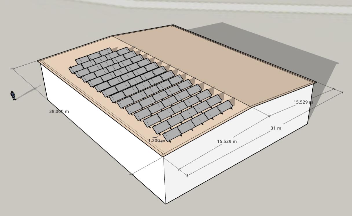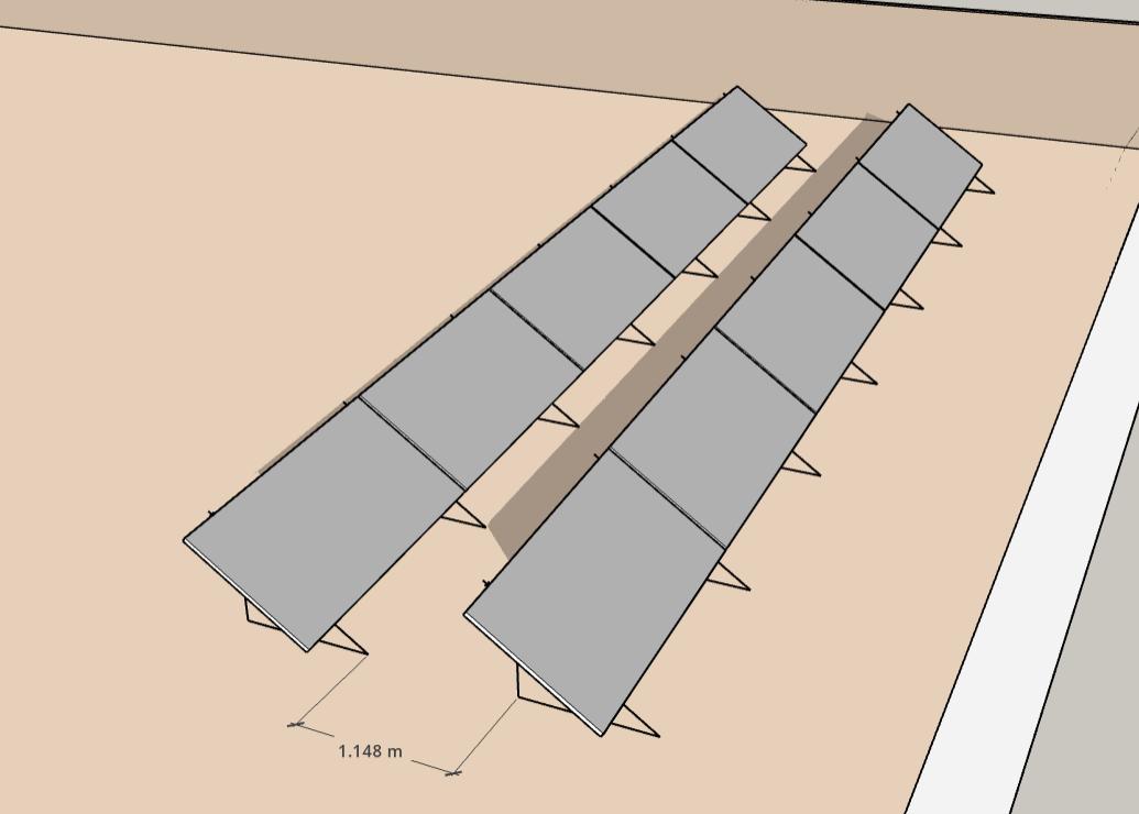Крім того, в процесі підготовки ми змоделювали можливі варіанти розміщення конструкцій, що значно спростило процес обчислення специфікації та комплектації кріплень для даного об'єкту. Додаткова імітація тіней на даний об'єкт, дозволила скорегувати відстань між рядами панелей.
