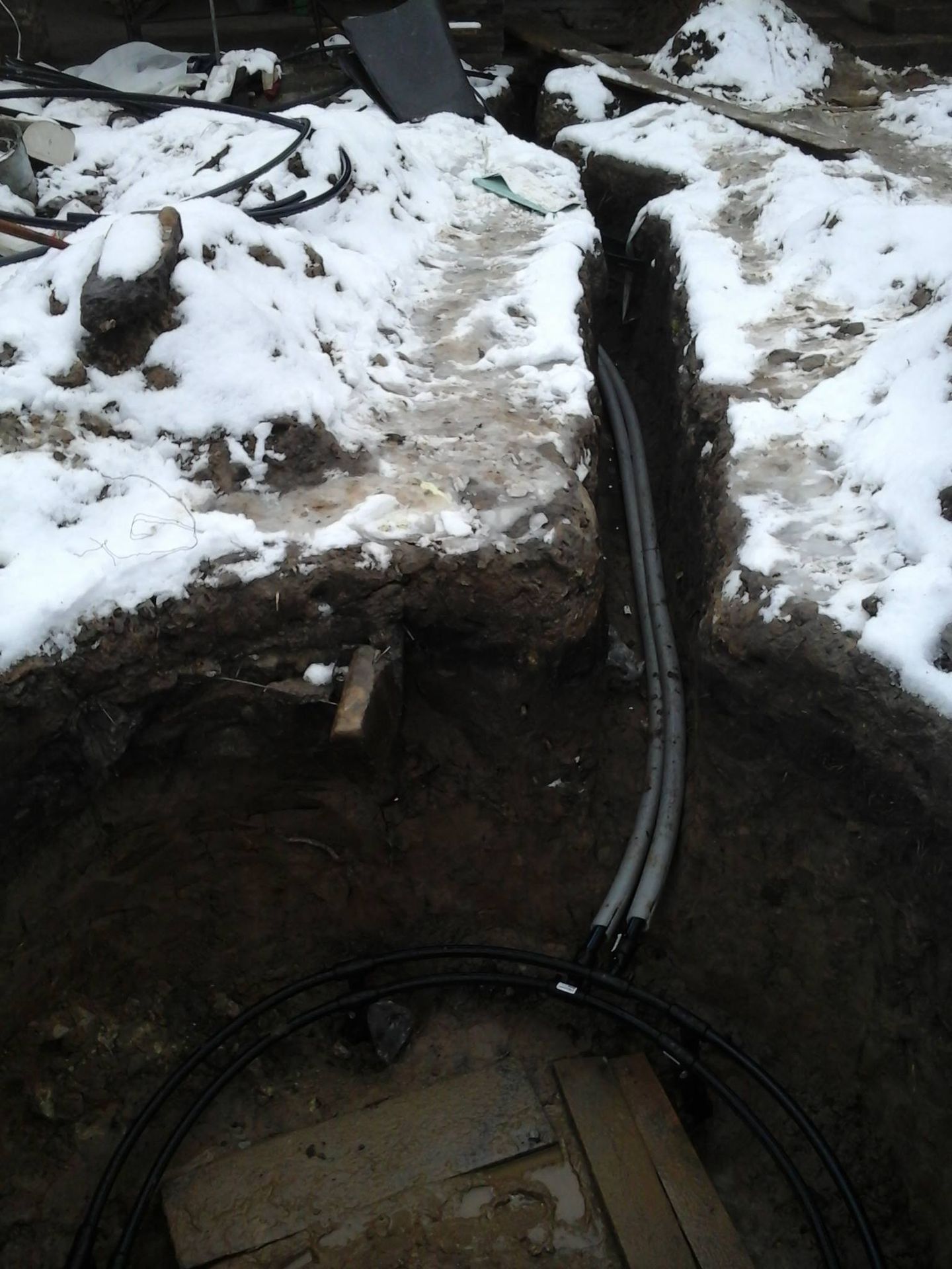 Для монтажу геополя ми використовували 6 свердловин, кожна з яких мала довжину 40 метрів. Незважаючи на складні погодні умови, наші фахівці змогли провести всі зварювальні роботи та прокласти магістраль до будинку. Після цього система була заповнена пропіленгліколем та опресована для перевірки герметичності.