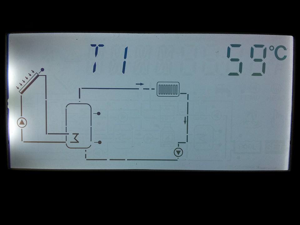 • Якщо температура колектора на 8°C вище температури води в системі опалення, насос геліоконтуру та теплообмінника включаються.