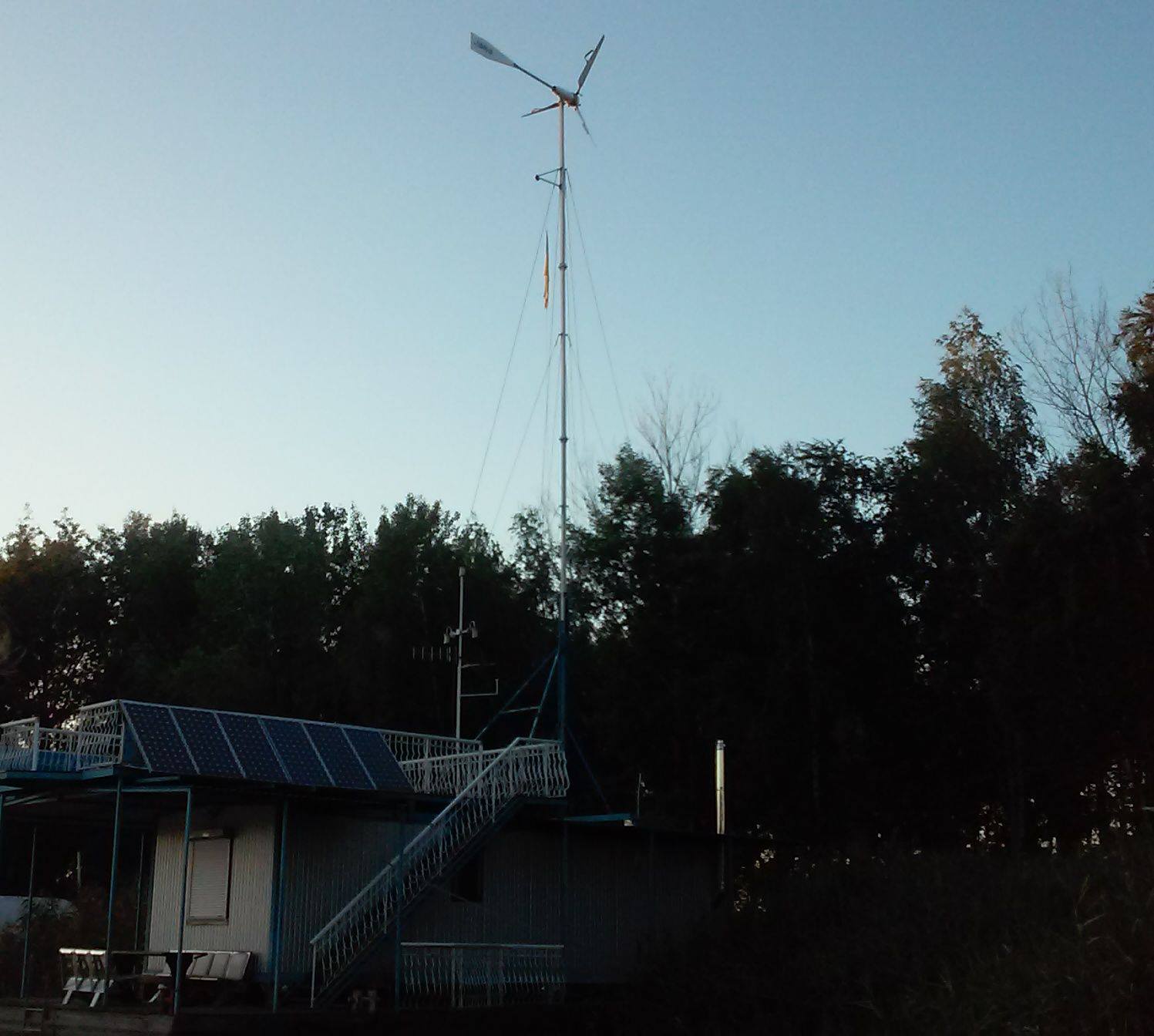 • Вітряк 800 Вт: Цей вітряк, встановлений на спеціальній щоглі, використовує силу вітру для генерування додаткової електроенергії.
