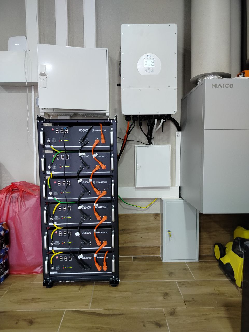 Після кількох місяців експлуатації власник переконався в ефективності системи й вирішив збільшити резервні потужності, щоб забезпечити більше часу автономної роботи у разі відключень електроенергії. Для цього ми додали дві нові акумуляторні батареї Pylontech ємністю по 5 кВт*год, що збільшило загальну потужність акумуляторного блоку до 30 кВт*год.