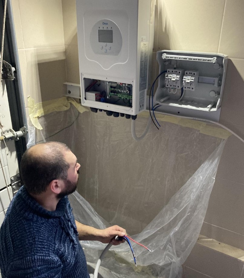 • Інвертор DEYE: Цей інвертор потужністю 5 кВт є серцем системи. Він може генерувати змінний струм з постійного струму, що виробляється сонячними панелями.