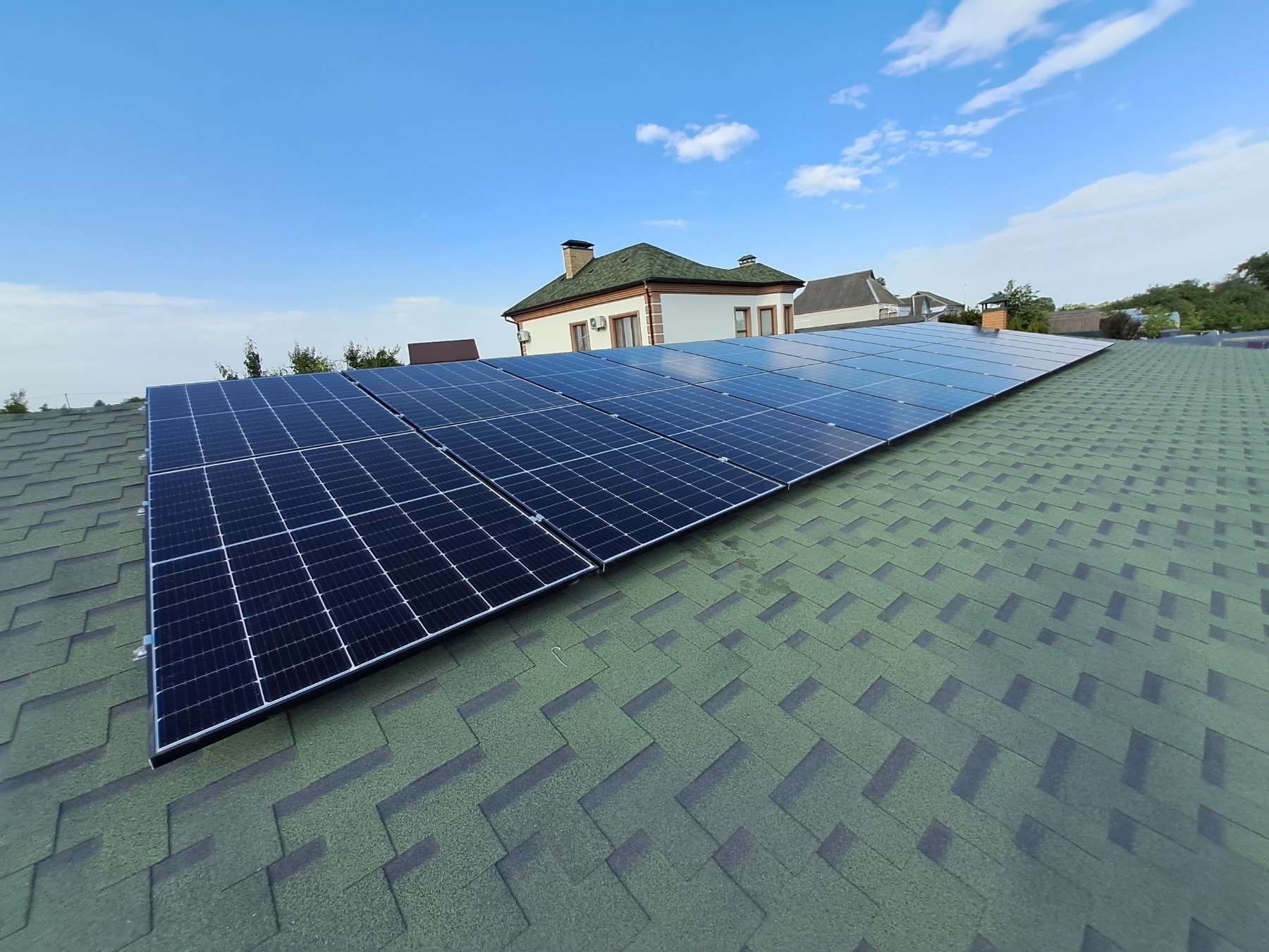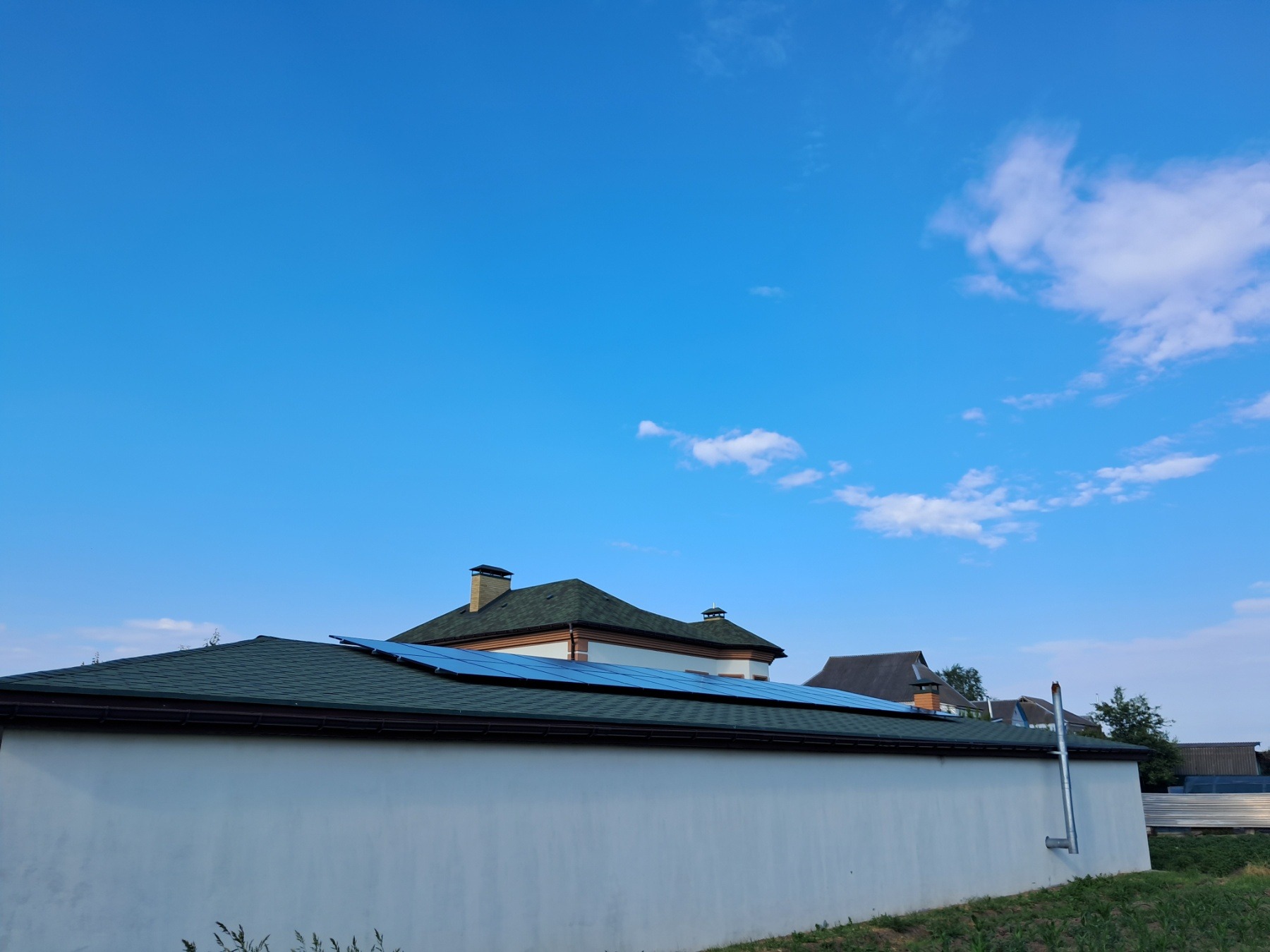 Система резервного живлення deye 8 кВт з сонячними батареями 10 кВт для компенсації споживання, Київська область, село Гореничі 2023-06 дах навіс