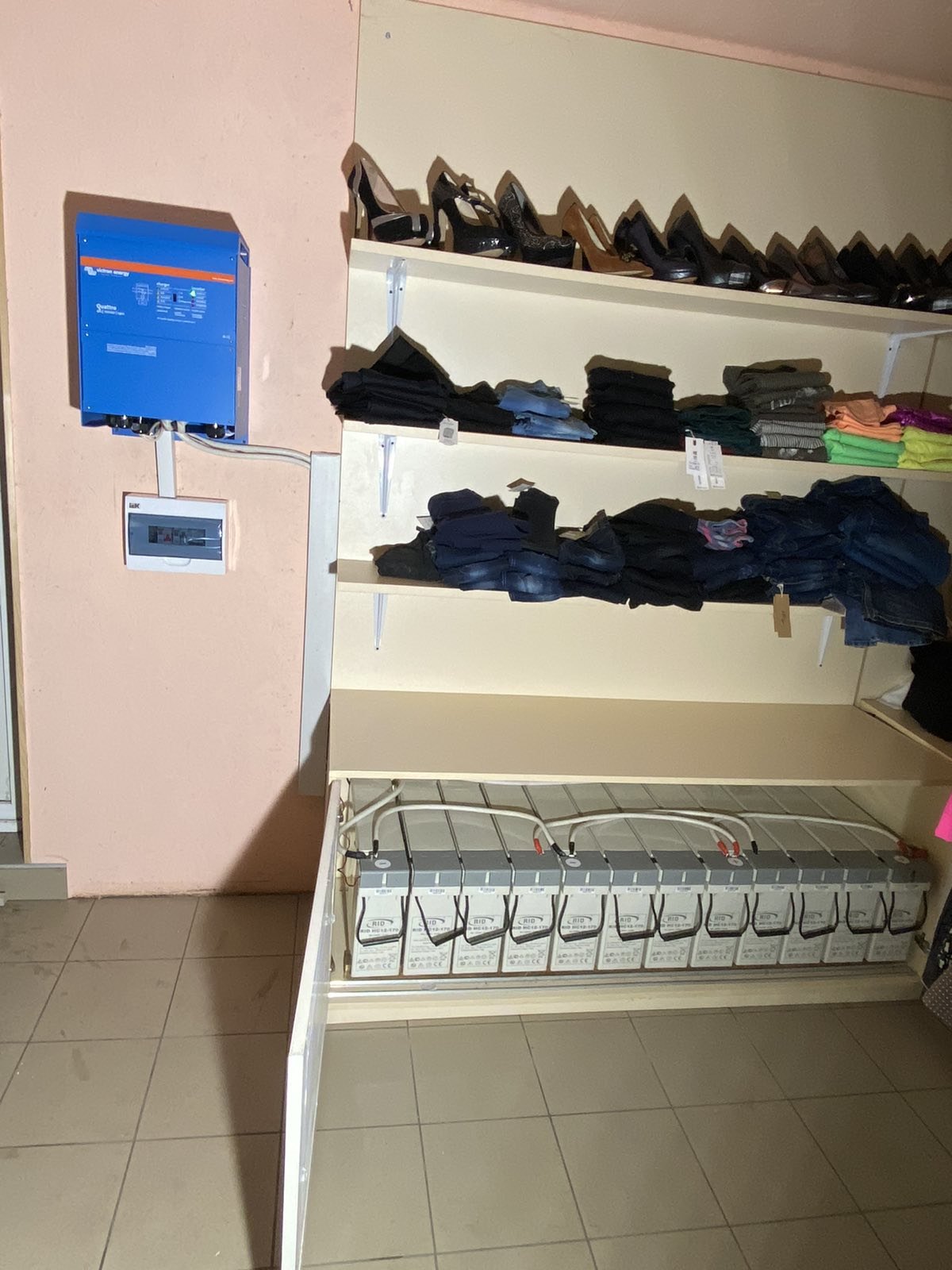 Система складається з інвертора Victron Energy 10 kVA, який може забезпечити резервне живлення потужністю до 10 кВт.