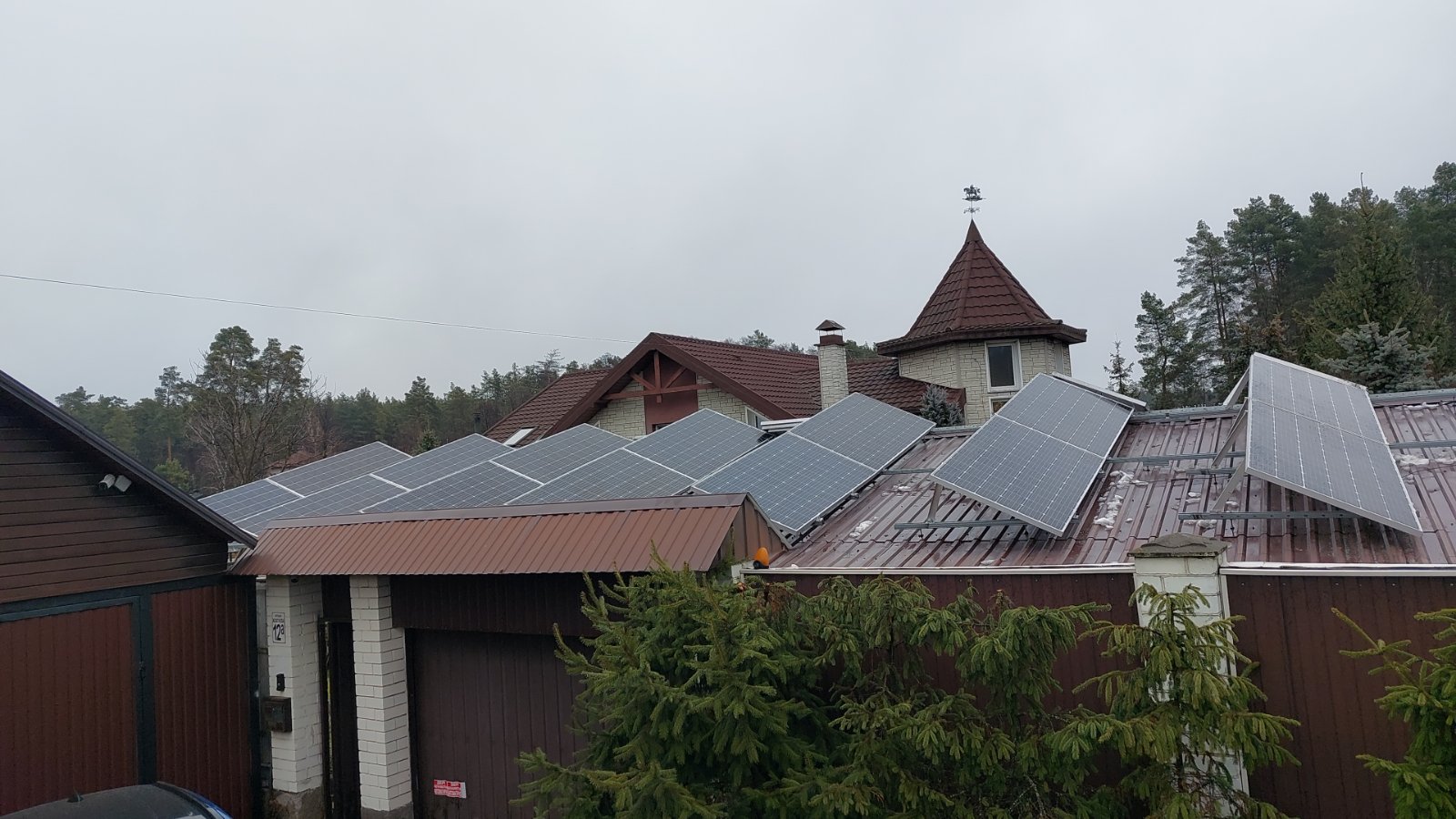Мережева сонячна система ALTEK 30 кВт на даху гаража зі скатами схід-захід, Київська область, село Мощун 2021-12