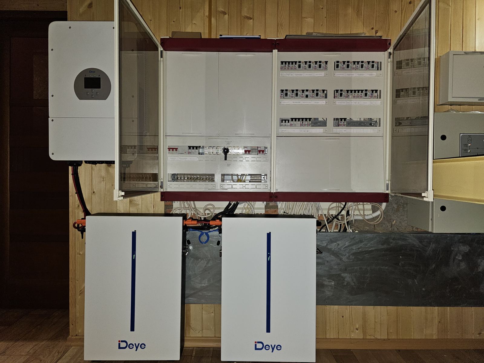 - Акумуляторні батареї DEYE: 2 акумулятори загальною ємністю 10 кВт⋅год, які забезпечують автономне живлення будинку протягом тривалого часу.