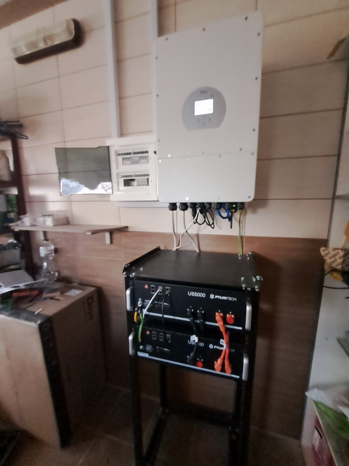 - Акумуляторні батареї PylonTech US5000: загальною ємністю 12 кВт⋅год, які забезпечують автономне живлення будинку протягом тривалого часу.