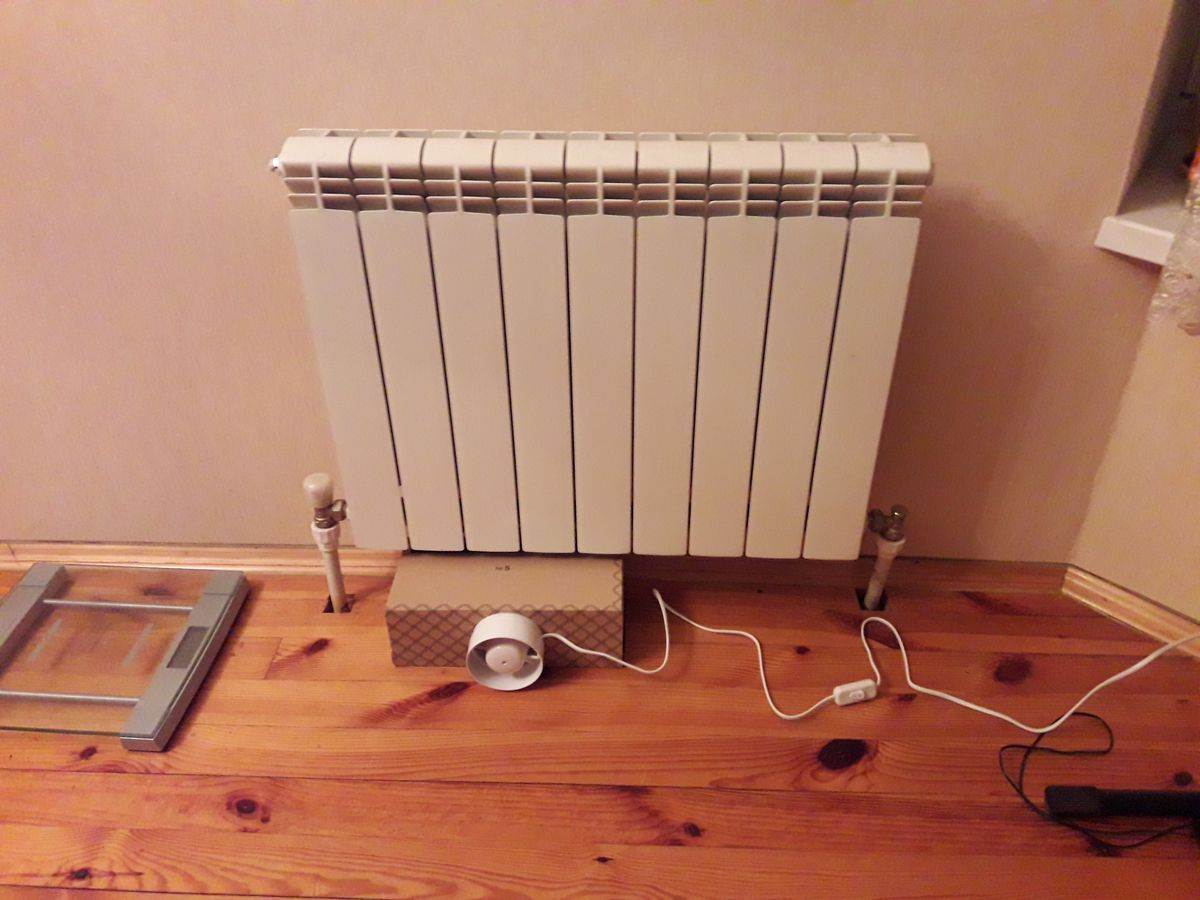 Я вирішив зробити примусову вентиляцію існуючих алюмінієвих радіаторів, говорячи технічною мовою Фен-Койл (англ. fan coil unit, від fan - вентилятор і coil - теплообмінник; також англ. air handling unit - вузол підготовки повітря).