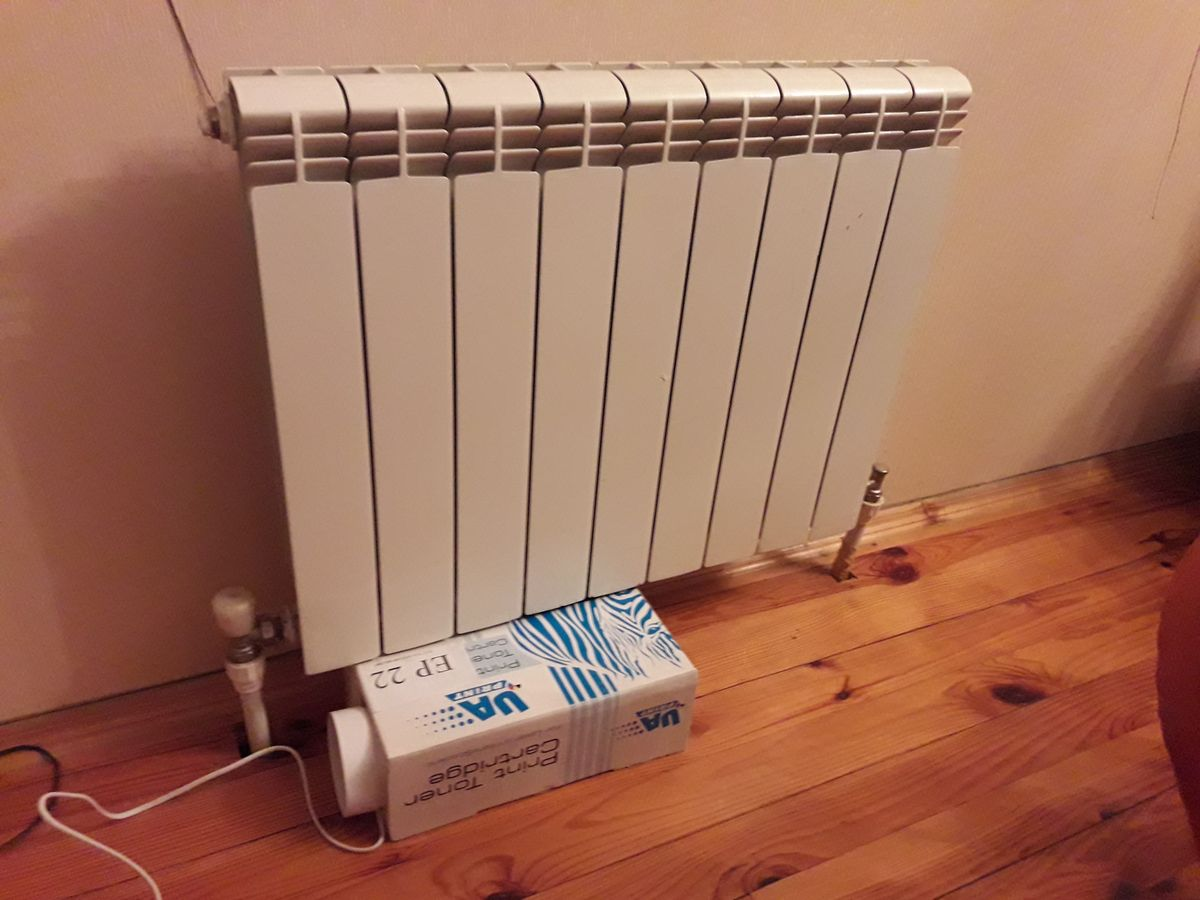 Встановив всі компоненти під батарею і включив у мережу 2 фанкойли-DIY;)