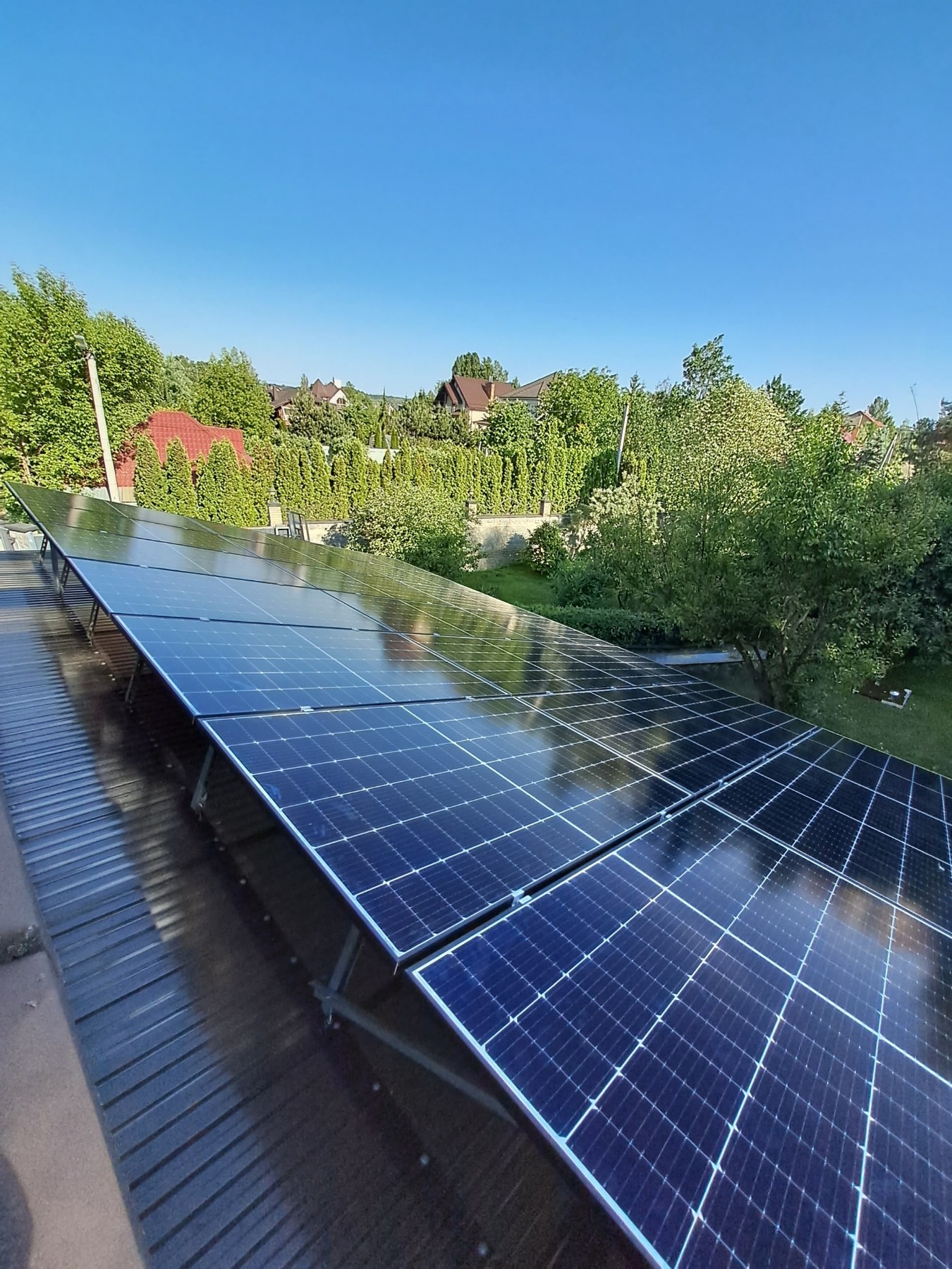 Система резервного живлення deye 8 кВт з сонячними батареями 10 кВт для компенсації споживання, Київська область, село Гореничі 2023-06 дах навіс