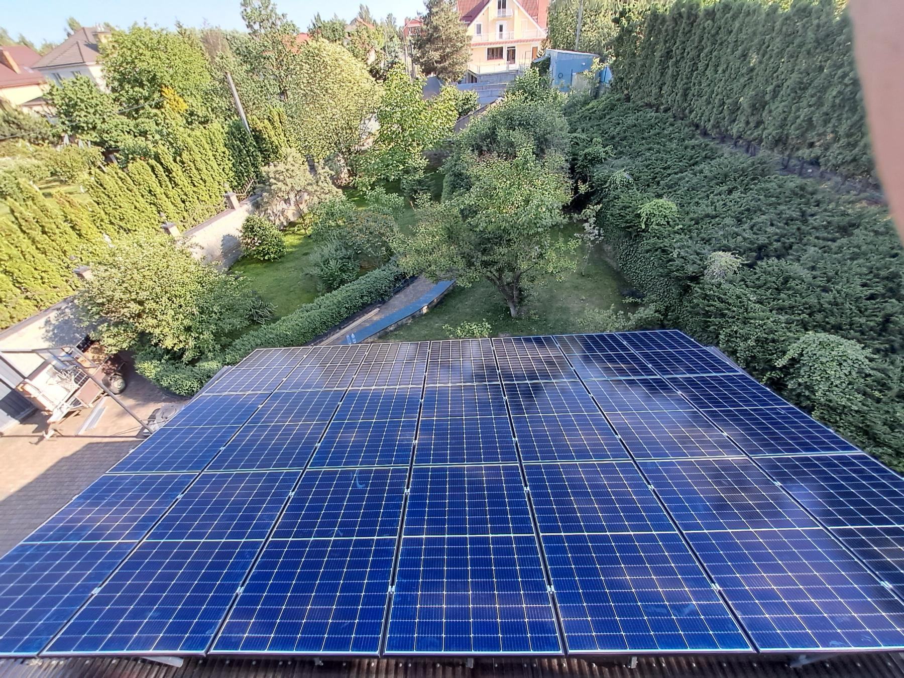 Ця сонячна система гарно інтегрувалась в інтер'єр ділянки, не порушуючи естетики. А разом з цим додала замовнику 8000 кВт годин електричної енергії на рік. Це дозволить заряджати трьохфазною зарядкою електромобіль та резервувати найважливіших споживачів в домогосподарстві.