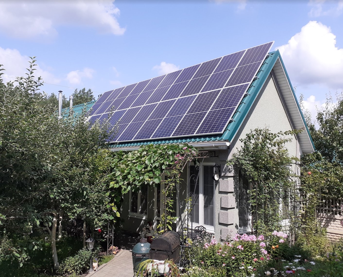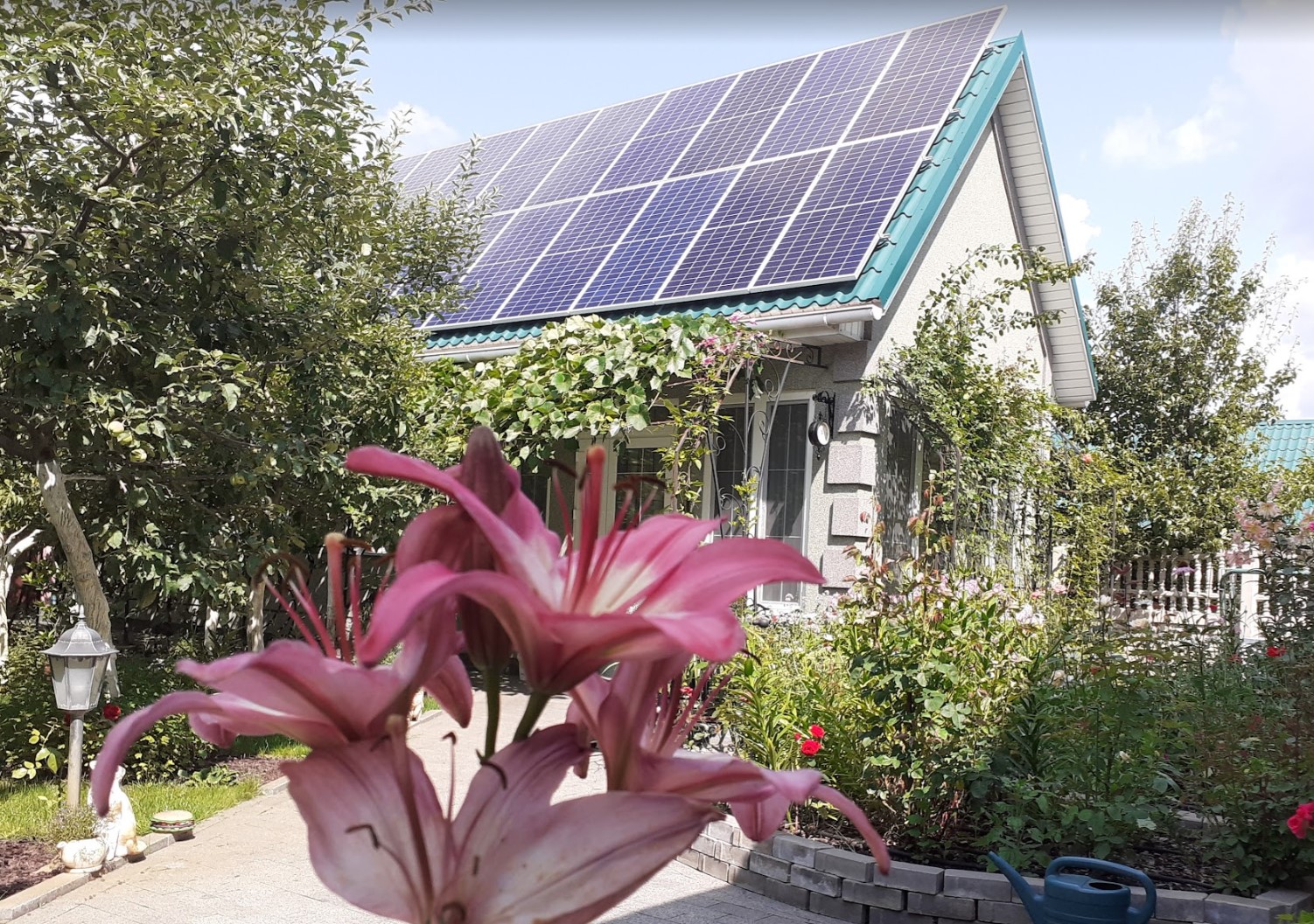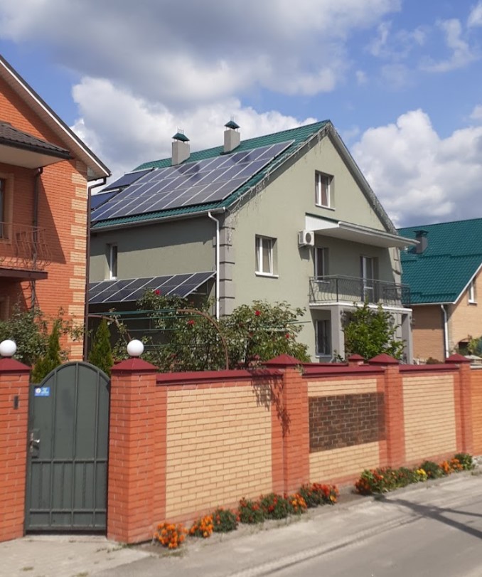 Сонячна станція потужністю 10 кВт, розташована в Київській області, селі Щасливе, встановлена в 2019 році.