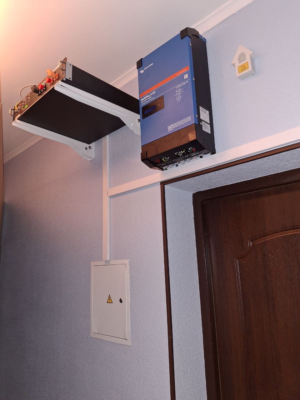 Перша система – інвертор Victron Energy MultiPlus-II GX на 3 кВт з акумуляторним блоком Pylontech US2000C. Ця система забезпечує достатній запас енергії для основних приладів у квартирі під час аварійних відключень.